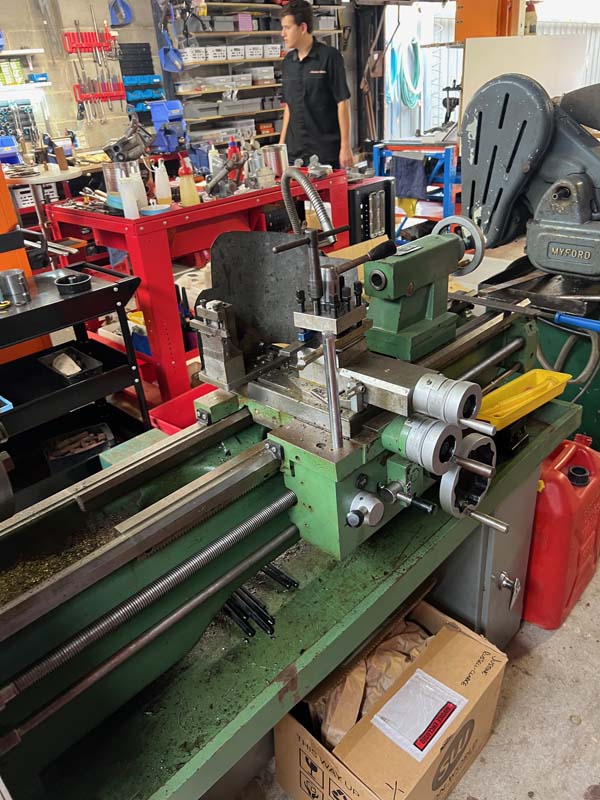 The actual lathe used by Roy Pedder back in the day is working hard for Steve these days.